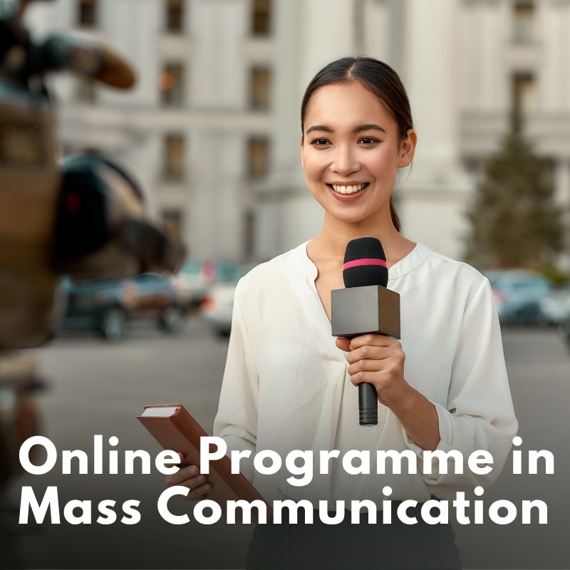 An Online Mass Communication Programme is a professional course designed for students who want to build a career in journalism, media, advertising, public relations, and digital content creation through a flexible online learning model. This program is ideal for fresh graduates, working professionals, and creative aspirants who wish to gain industry-relevant skills while studying from anywhere at their convenience through live classes, recorded sessions, and a Learning Management System (LMS). The Online Mass Communication curriculum covers key areas such as Journalism, Public Relations, Advertising, Digital Media, Content Writing, Broadcasting, Photography, Video Production, Media Ethics, and Communication Strategies. Some programs also offer specializations in Social Media Management, Film & Television Production, and Corporate Communication to equip students with modern media industry skills. Eligibility for an Online Mass Communication program generally requires completion of 10+2 or a bachelor’s degree from a recognized board/university. The duration of the course typically ranges from 1–3 years, depending on the program and university, with a flexible schedule that allows students to balance learning with other commitments. These programs are offered by UGC-recognized and NAAC-accredited universities, ensuring academic credibility and industry acceptance. The program emphasizes practical assignments, media projects, internships, and portfolio development to prepare students for real-world media roles. After completing an Online Mass Communication program, students can pursue careers as Journalist, Content Writer, Digital Marketing Executive, PR Executive, Video Producer, Social Media Manager, News Reporter, or Media Analyst. This course is an ideal choice for creative individuals aiming to establish a successful career in the dynamic and fast-growing field of media and communication.